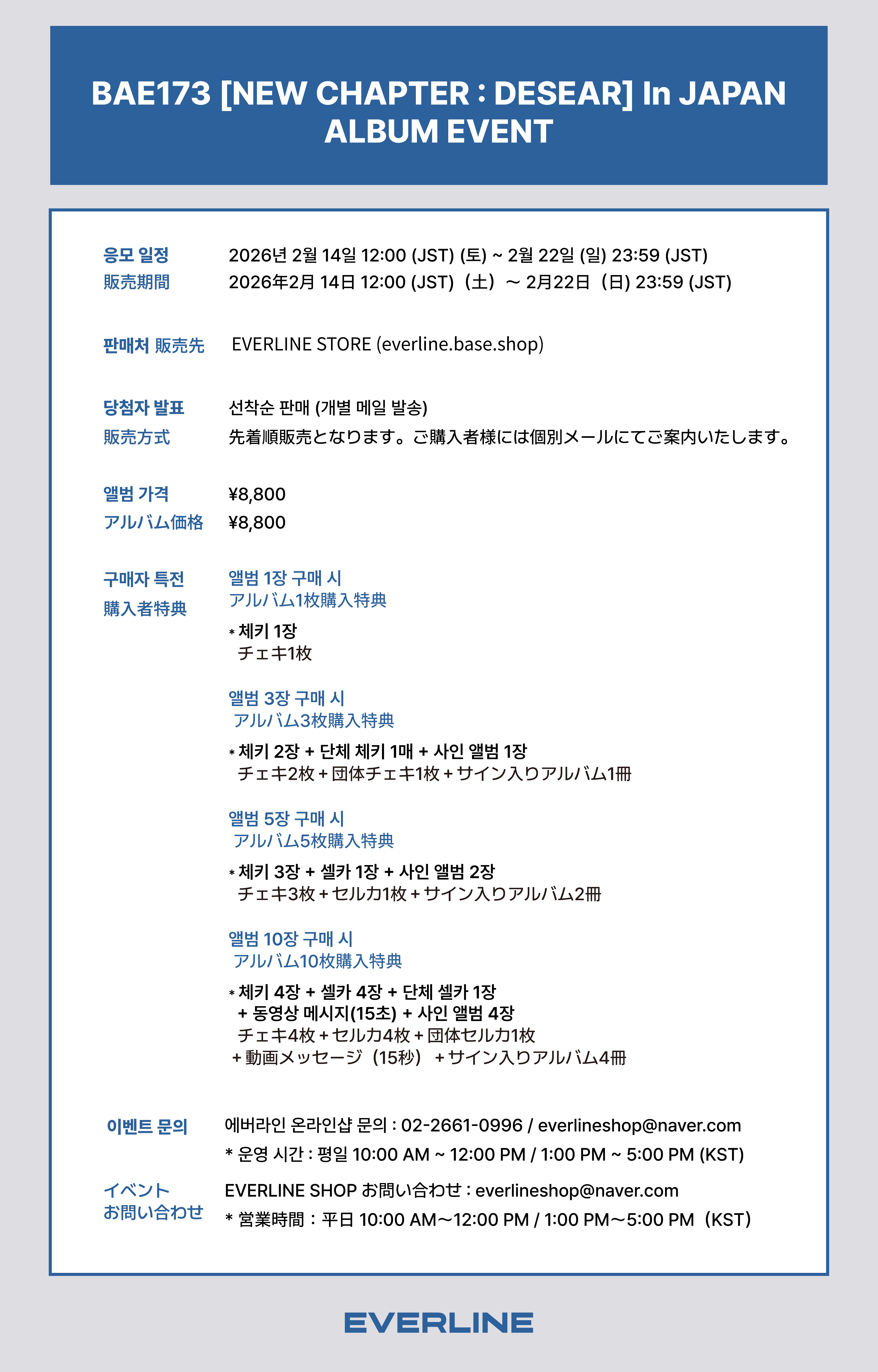 【2/26(木)特典会】BAE173 [NEW CHAPTER : DESEAR] In JAPAN