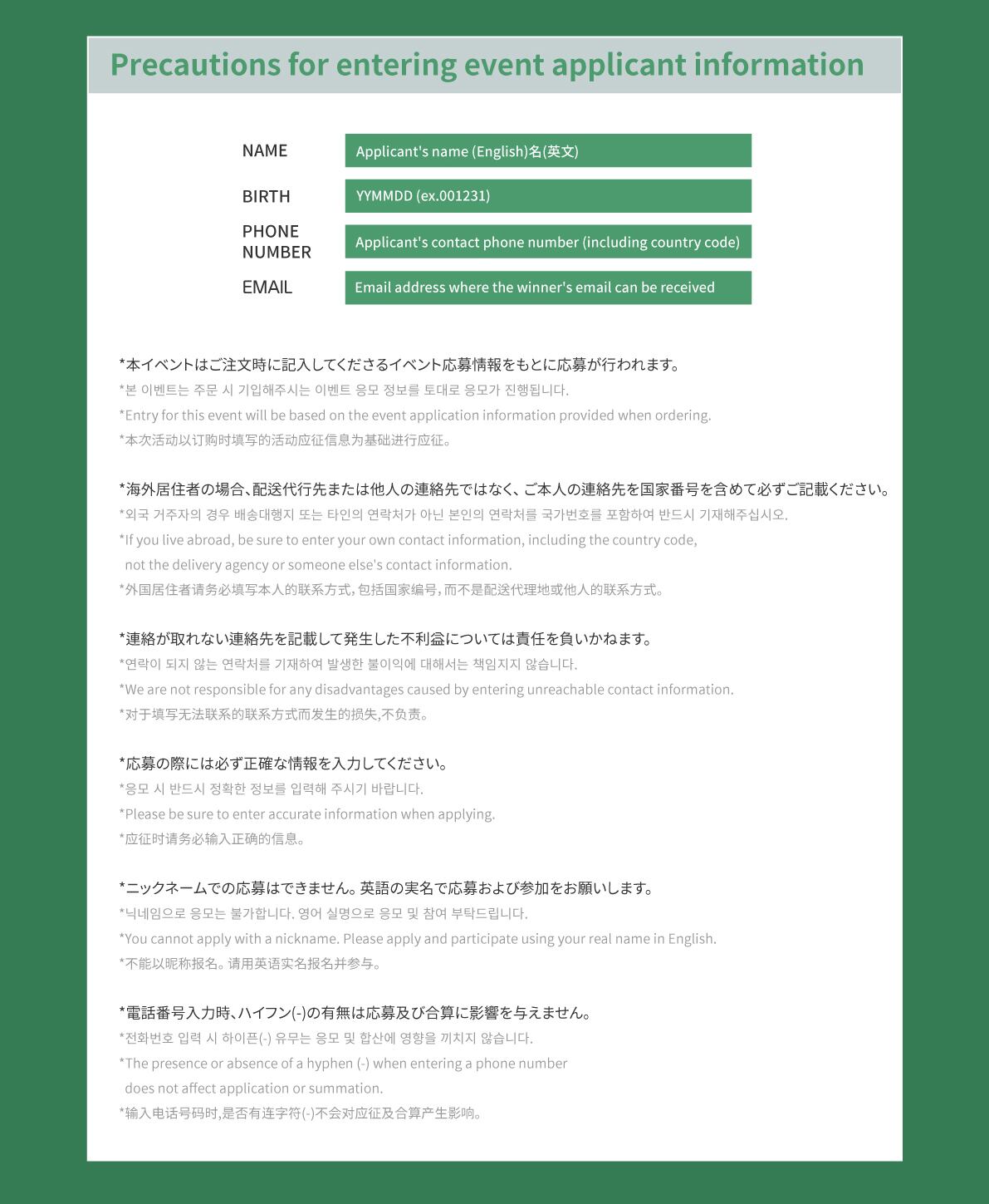 ※購入する際、応募するメンバーの名前(日本語or英語)を必ず記入してください。