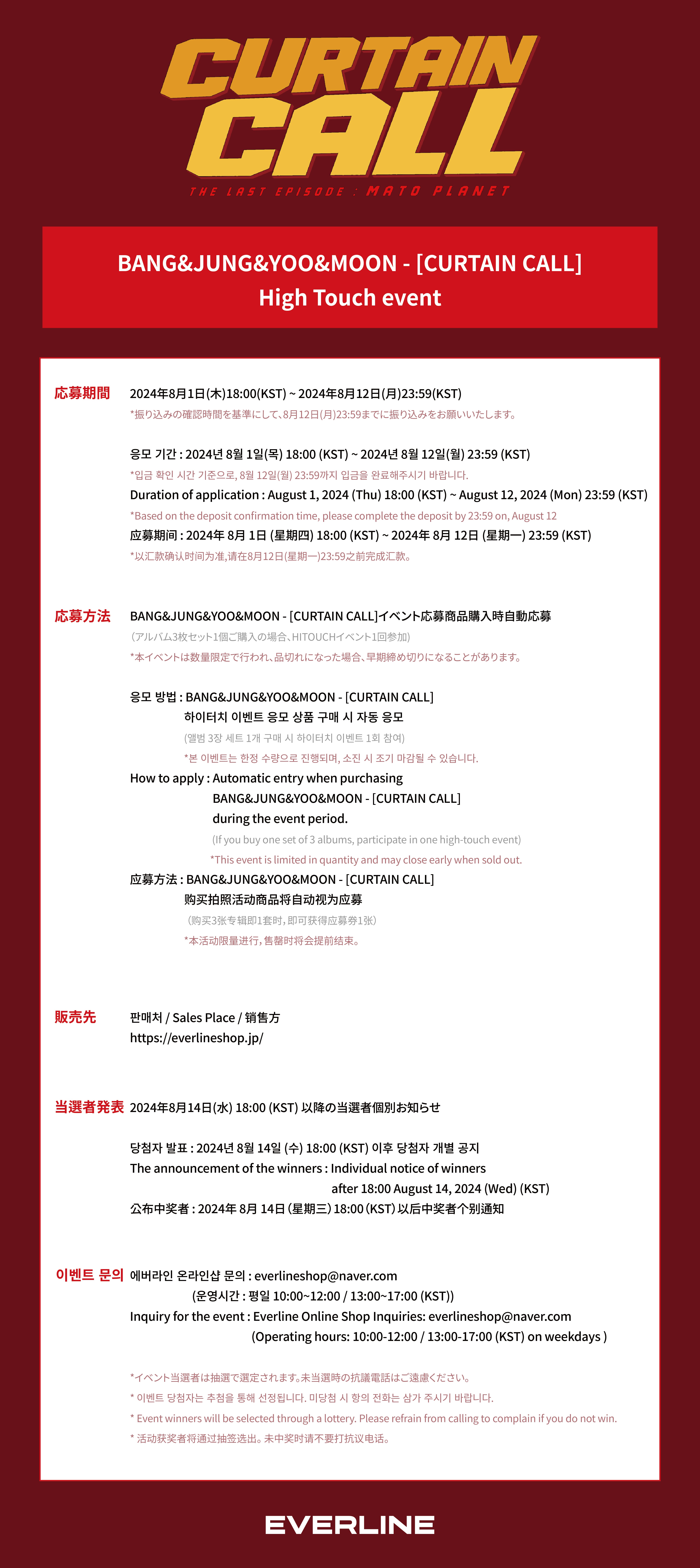*Changes to the applicant information and contact information provided when applying for the event are absolutely prohibited. Please make sure to check the information and contact information to participate in the event before ordering. If you entered something incorrectly, please repurchase within the application period.